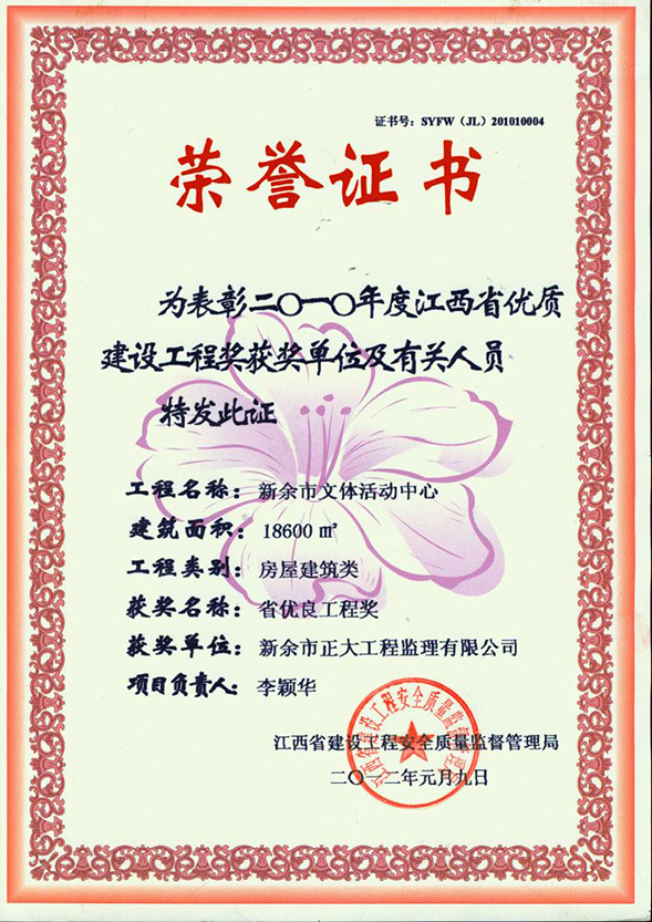 新余市正大工程監(jiān)理有限公司依托新余市建筑設(shè)計(jì)院,于1995年11月成立,是新余市開(kāi)展監(jiān)理工作最早的監(jiān)理單位,本公司具有建設(shè)部核發(fā)的房屋建筑工程甲級(jí)監(jiān)理資質(zhì)、市政公用工程乙級(jí)監(jiān)理資質(zhì)、國(guó)家人防辦核發(fā)的人防工程監(jiān)理乙級(jí)資質(zhì)。我公司始終堅(jiān)持“客戶至上、質(zhì)量第一、信守合同”的經(jīng)營(yíng)理念;追求“為社會(huì)創(chuàng)造價(jià)值、為業(yè)主創(chuàng)造效益、為自身謀求發(fā)展”的經(jīng)營(yíng)宗旨;遵循“守法、誠(chéng)信、公正、科學(xué)、優(yōu)質(zhì)、高效”的工作原則,以雄厚的技術(shù)力量、完善的管理制度、豐富的監(jiān)理經(jīng)驗(yàn)、良好的企業(yè)信譽(yù)迅速成為我市監(jiān)理行業(yè)的一支新銳力量!